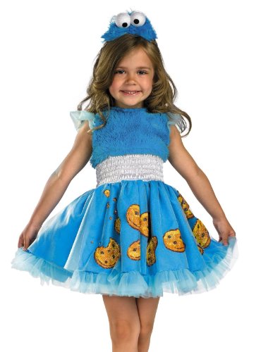 With the Girl's Cookie Monster Costume your child can be the classic Sesame Street character, while still being her girly self! This fun kid's Halloween costume puts a new twist on the iconic puppet, with an adorable dress featuring a plush furry top and cookie printed skirt. This Cookie Monster costume also comes with a cute headband featuring the gluttonous monster's googly eyes. Your daughter will love trick-or-treating in this girl Cookie Monster costume that is more pretty than hungry.You will not be disappointed with