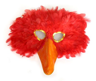 "Buy New Red Feather Bird Mask with orange beak" Overview